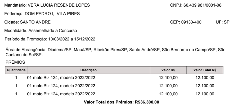Tendo em vista o que o estabelece o § 1o do art. 1o da Lei no 5.768, de 20 de dezembro de 1971, regulamentada pelo Decreto no 70.951, de 9 de agosto de 1972, e considerando o que determina a letra i do inciso XII do artigo 27 da Lei no 10.683, de 28 de maio de 2003, e o que determina a Portaria SEAE no 10 de 30 de janeiro de 2008, e o que consta no Processo Administrativo n.o 17377.000652/2022-92, no uso da competência delegada pelo inciso I do artigo 2o da Portaria SEAE no 71, de 9 de abril de 2015, CERTIFICO que fica autorizada a promoção requirida pelos solicitantes acima identificados, obdecido o plano de operação aprovado, conforme especificações acima.